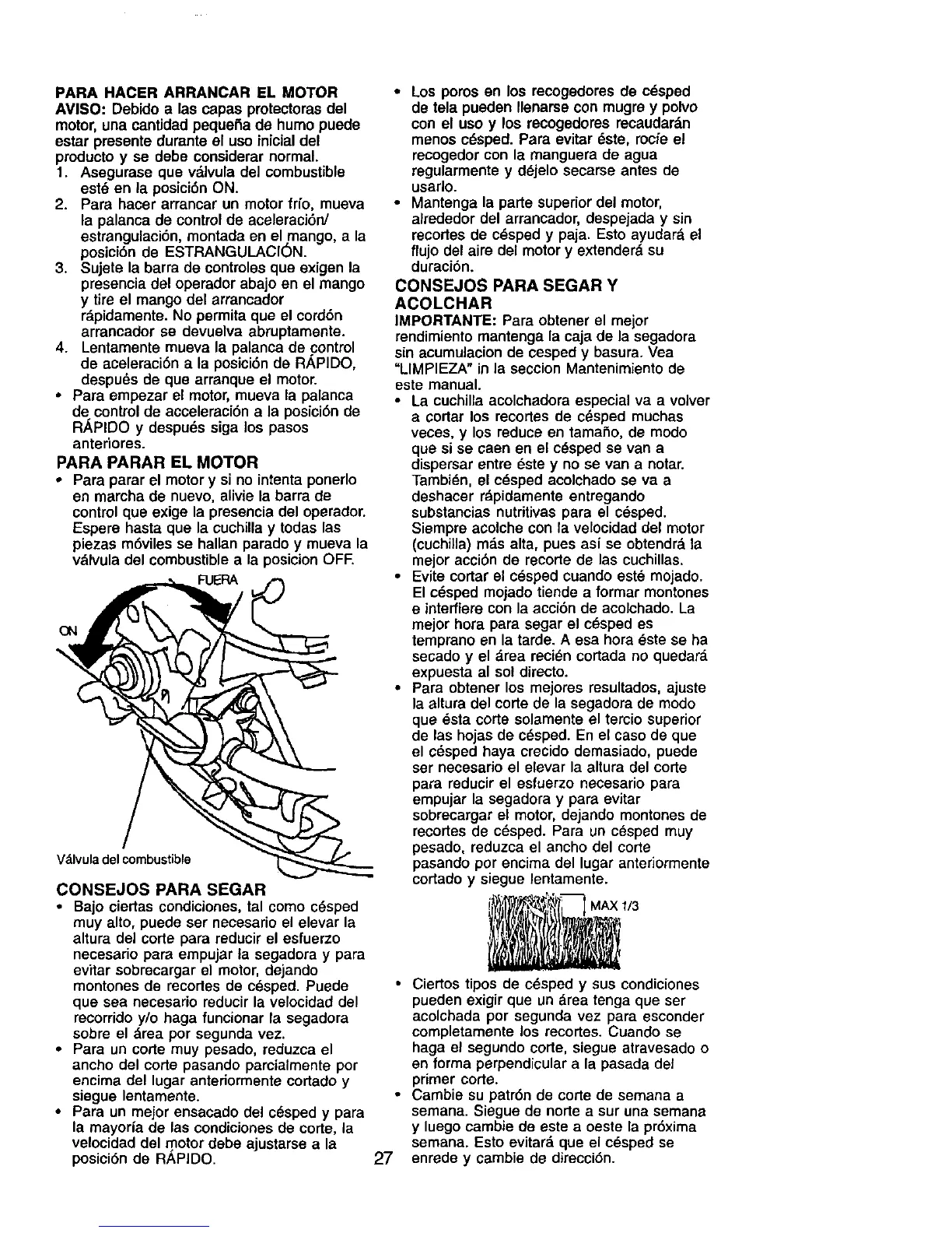 empujar la segadora y para evitar
