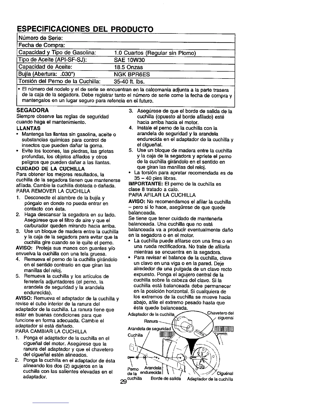de la caja de la segadora. Deba registrartanto el nOmerode serie come la fecha de compra y