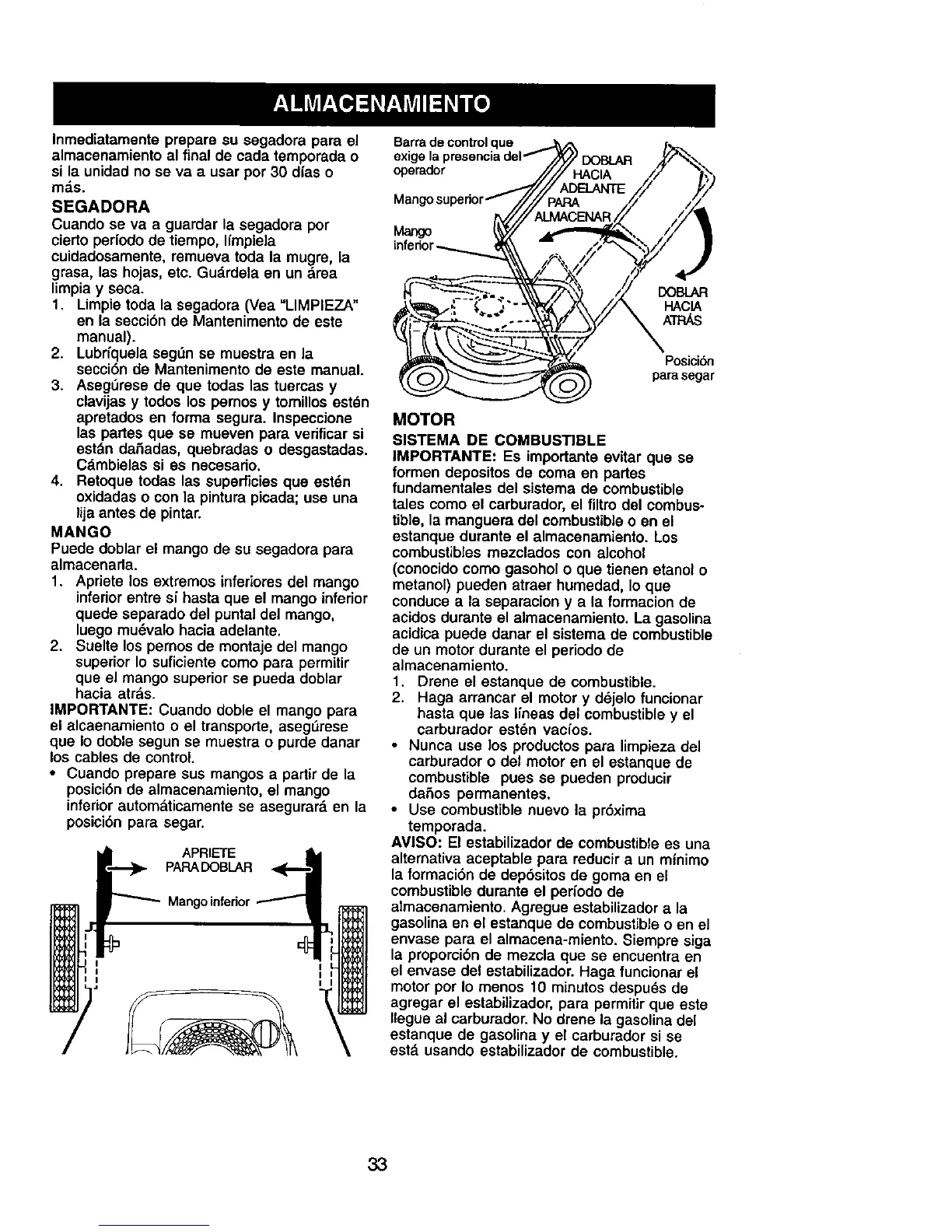 Cuando se va a guardar la segadora por