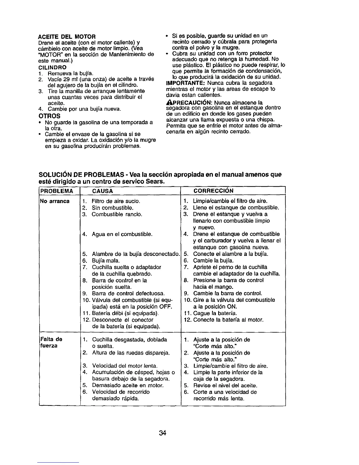 SOLUCION DE PROBLEMAS - Vea la seccibn apropiada en el manual amenos que