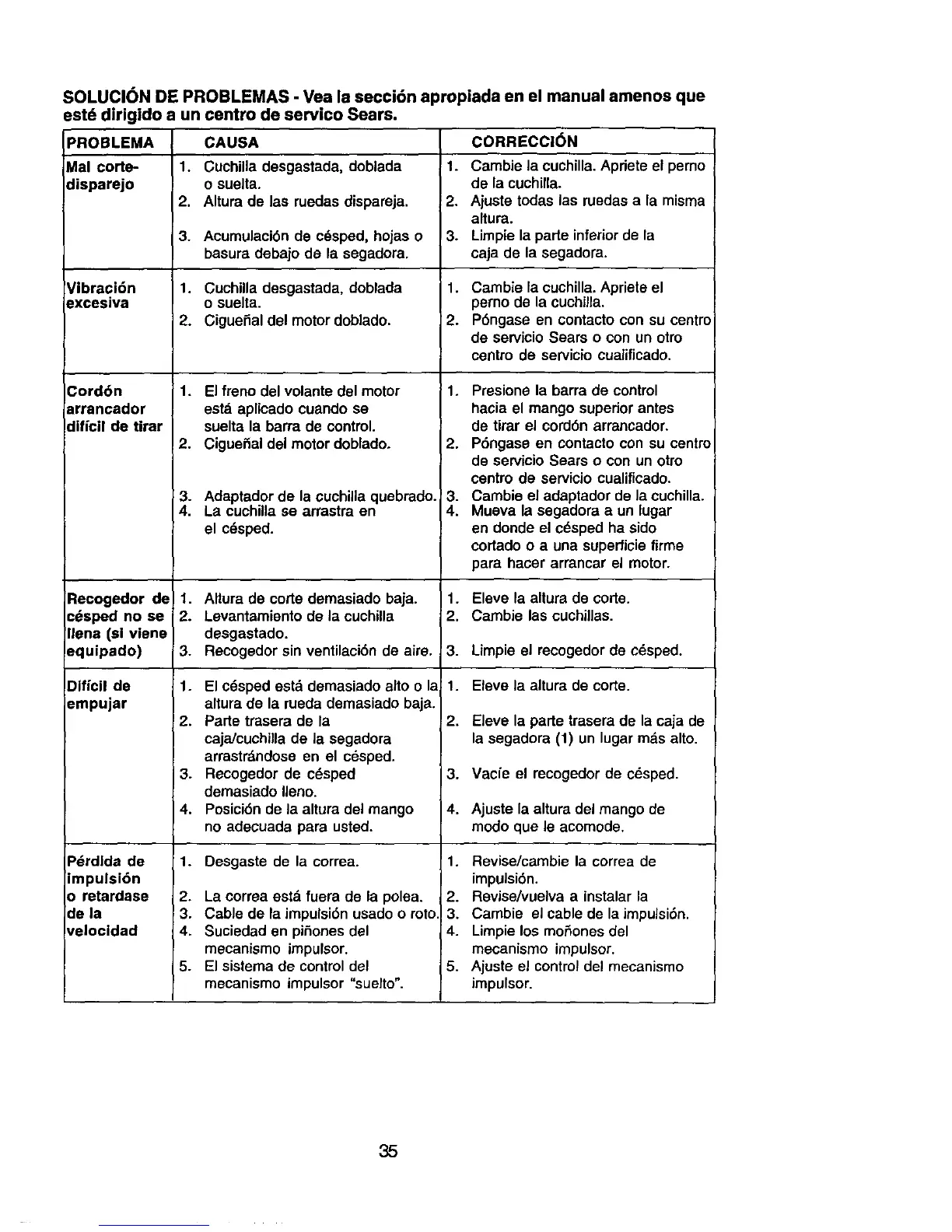 SOLUCION DE PROBLEMAS - Vea la secci6n apropiada en el manual amenos que