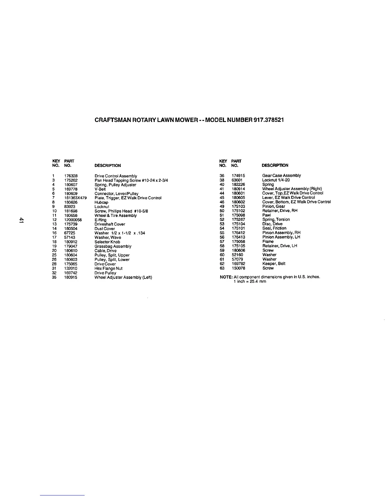 CRAFTSMAN ROTARY LAWN MOWER -- MODEL NUMBER 917.378521