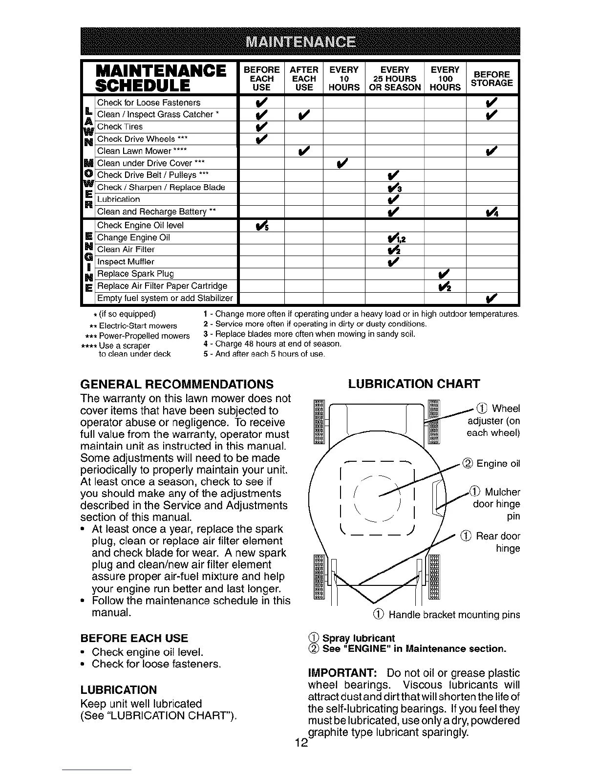 (See "LUBRICATION CHART").