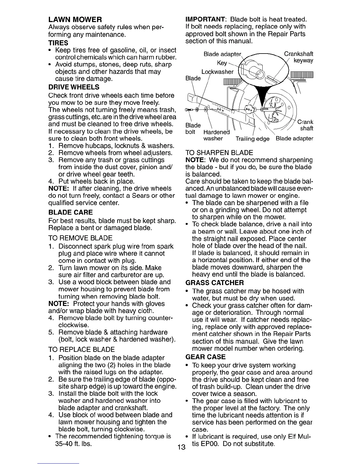 blade adapter and crankshaft.