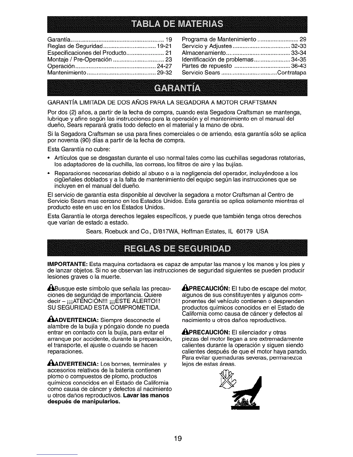 El servicio de garantfa esta disponible al devolver la segadora a motor Craftsman al Centro de