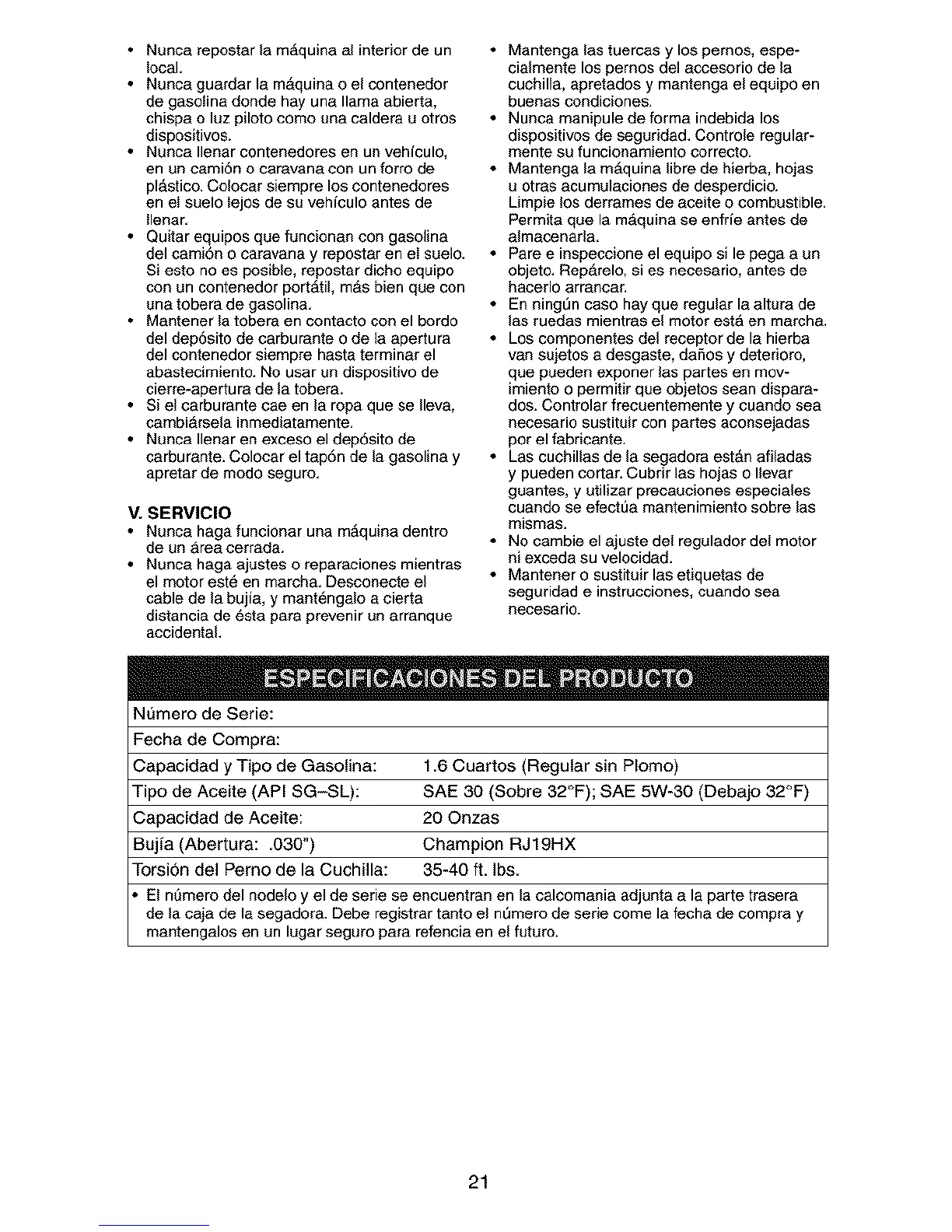 de la caja de la segadora. Debe registrar tanto el nt_mero de serie come la fecha de compra y