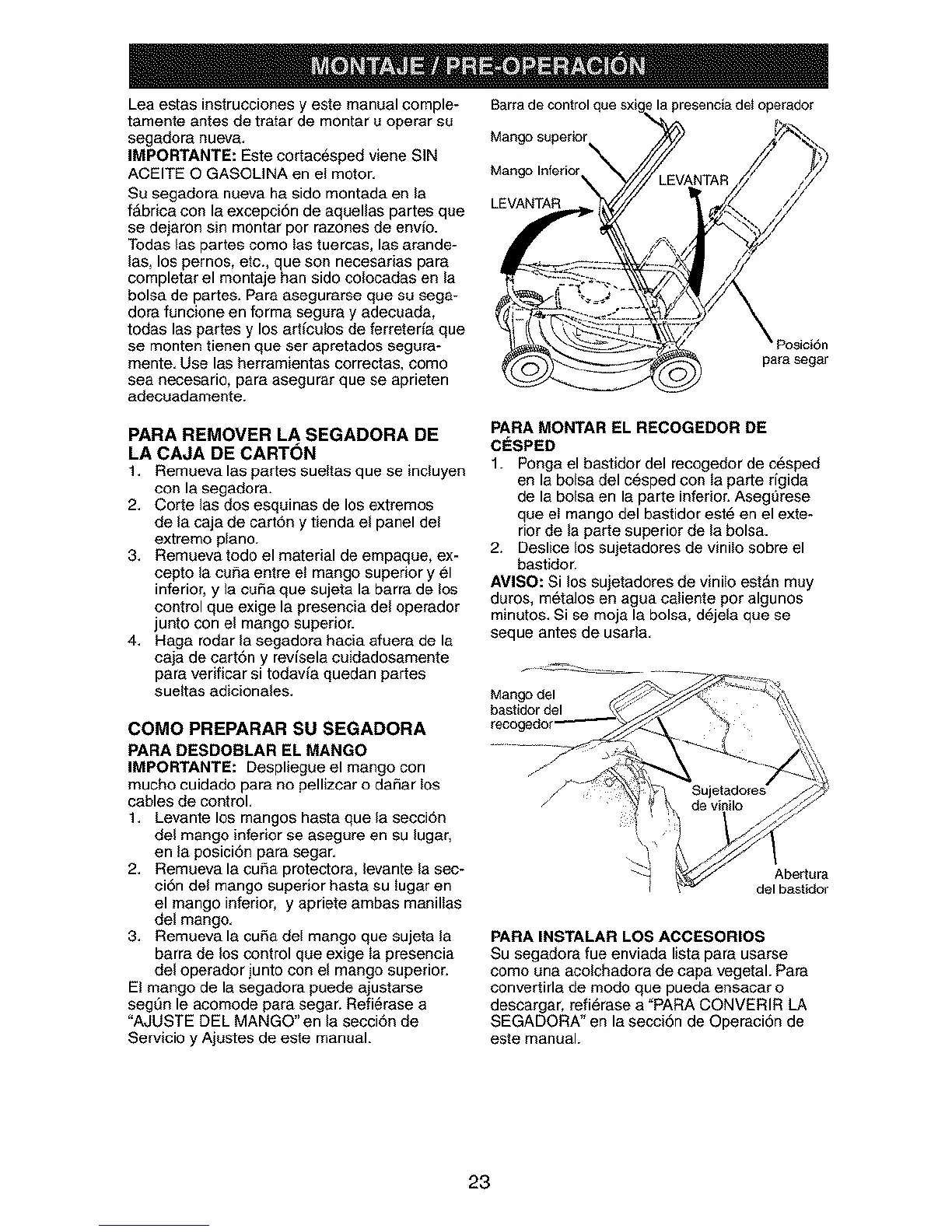 IMPORTANTE: Este cortac6sped viene SIN