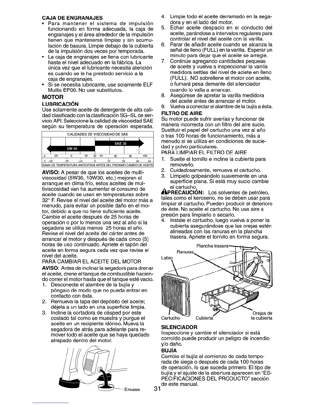 • La caja de engranajes se Ilena con lubricante
