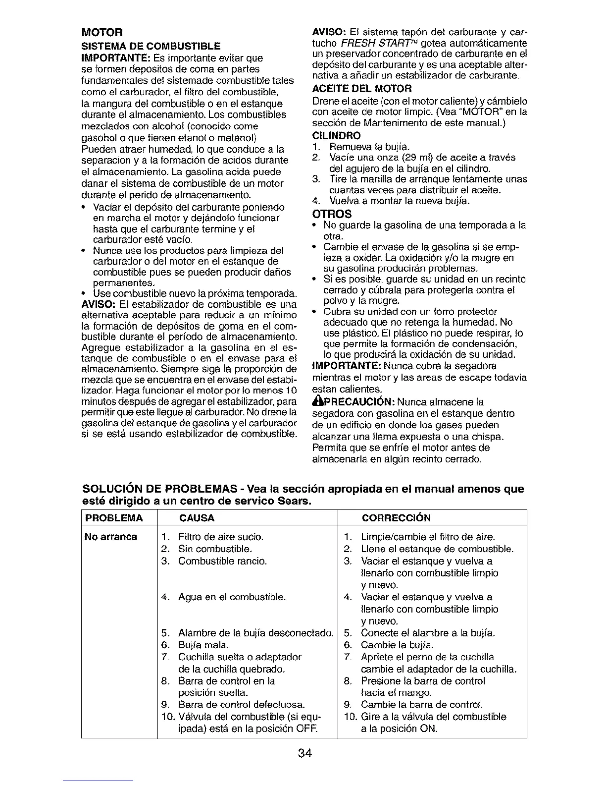 con aceite de motor limpio. (Vea "MOTOR" en la