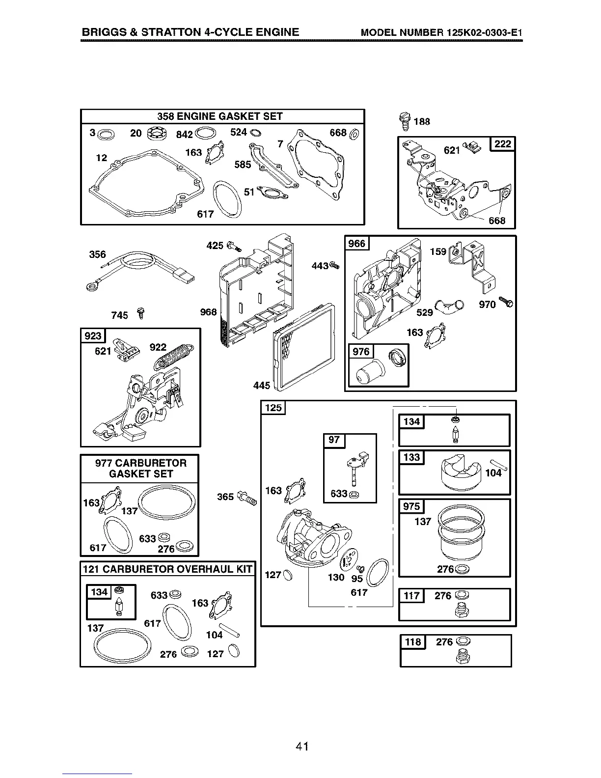 BRIGGS & STRATTON 4-CYCLE ENGINE MODEL NUMBER 125K02-0303-E1