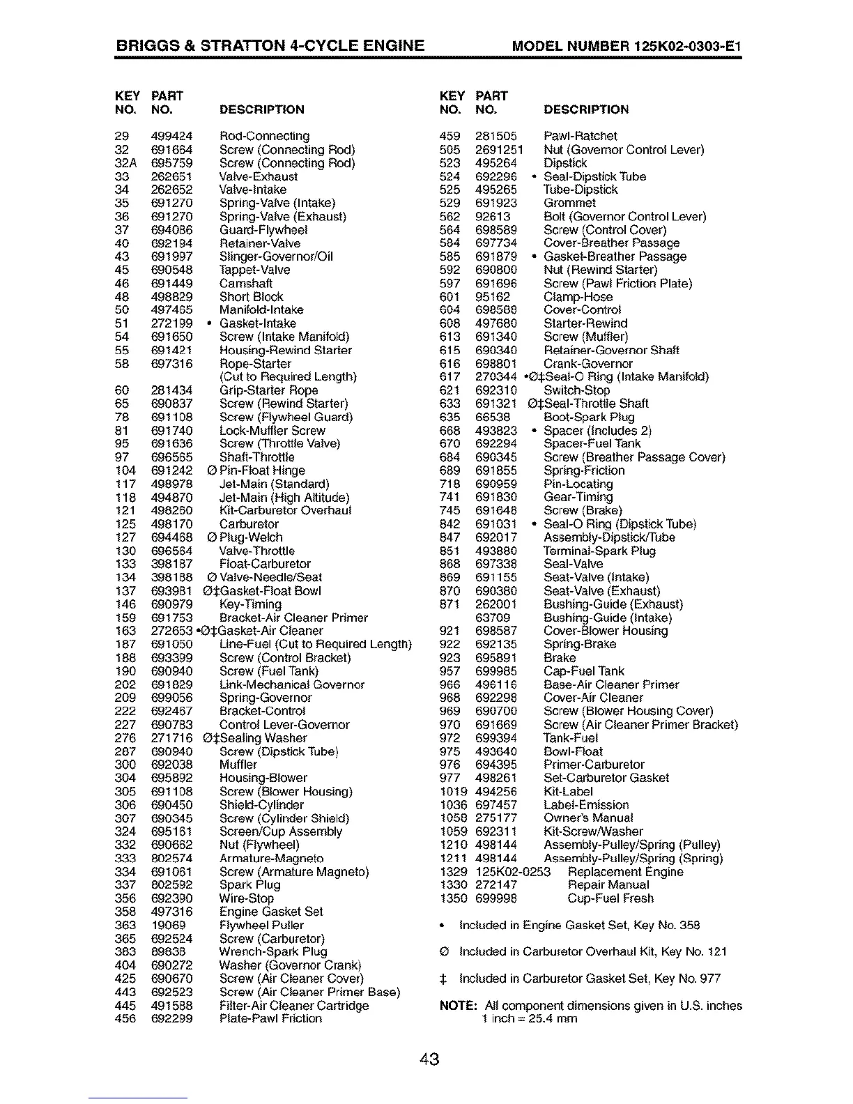 BRIGGS & STRATTON 4-CYCLE ENGINE MODEL NUMBER 125K02-0303-E1