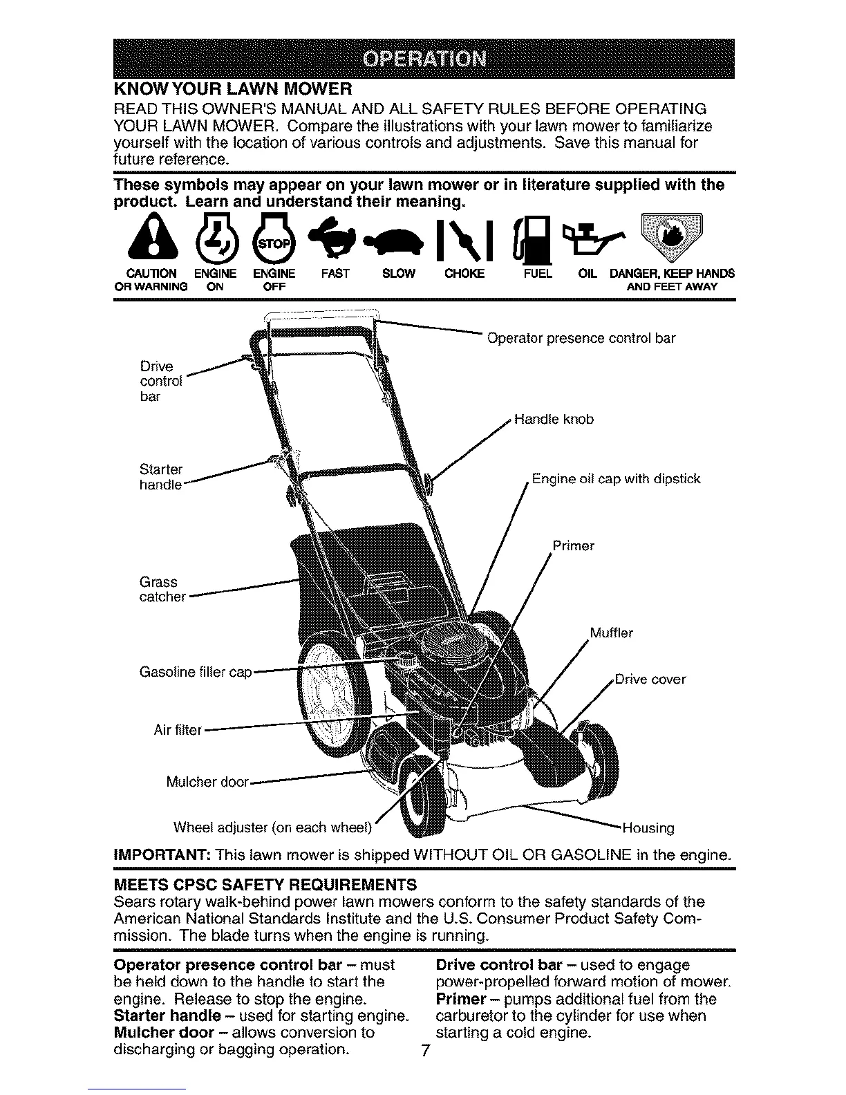 YOUR LAWN MOWER. Compare the illustrations with your lawn mower to familiarize