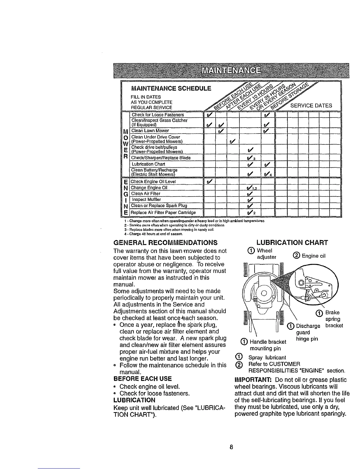 maintain mower as instructed in this