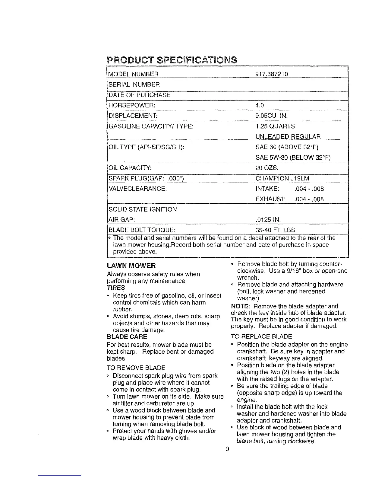OIL TYPE (API-SF/SG/SH): SAE 30 (ABOVE 32°F)