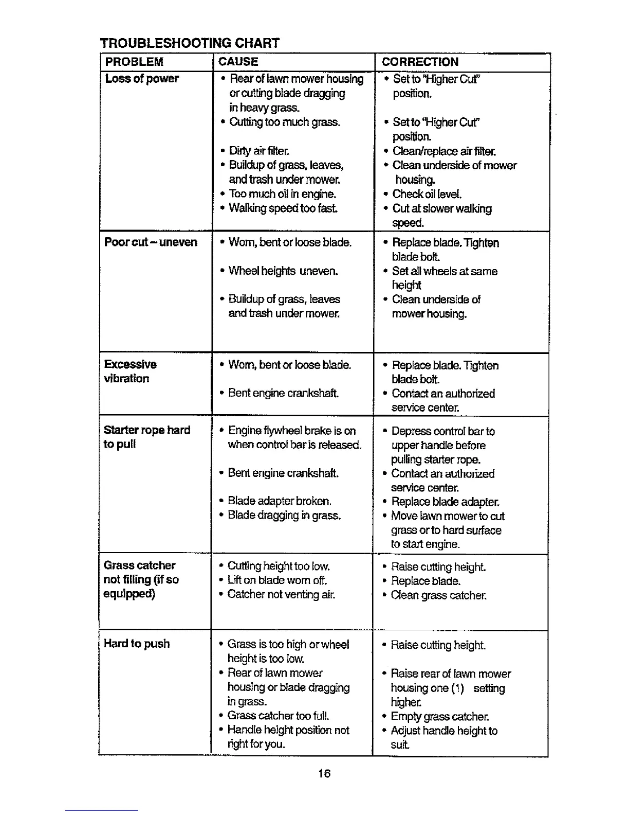 TROUBLESHOOTING CHART