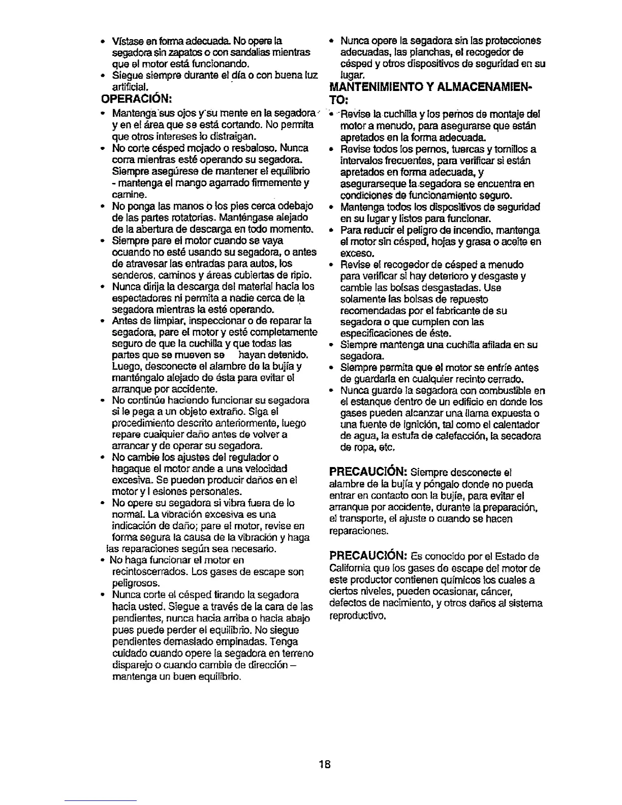 ocuando no est_ usando su segadora, o antes