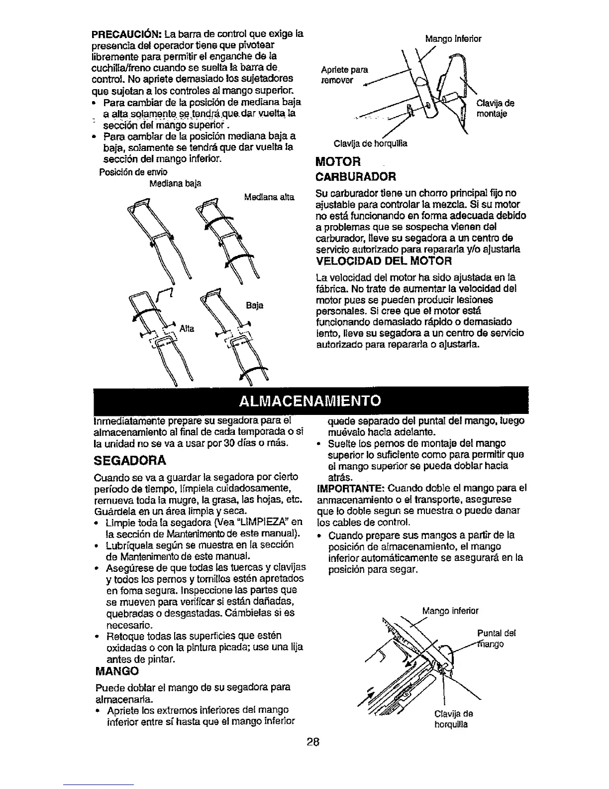 Cuando se va a guardar la segadora pot e[erto