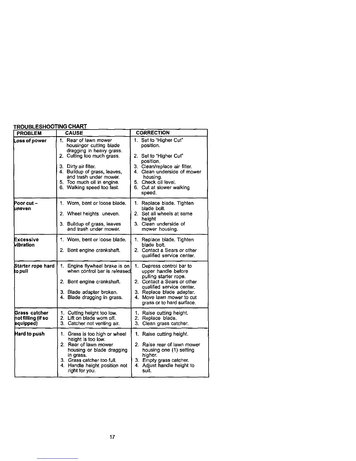 TROUBLESHOOTING CHART