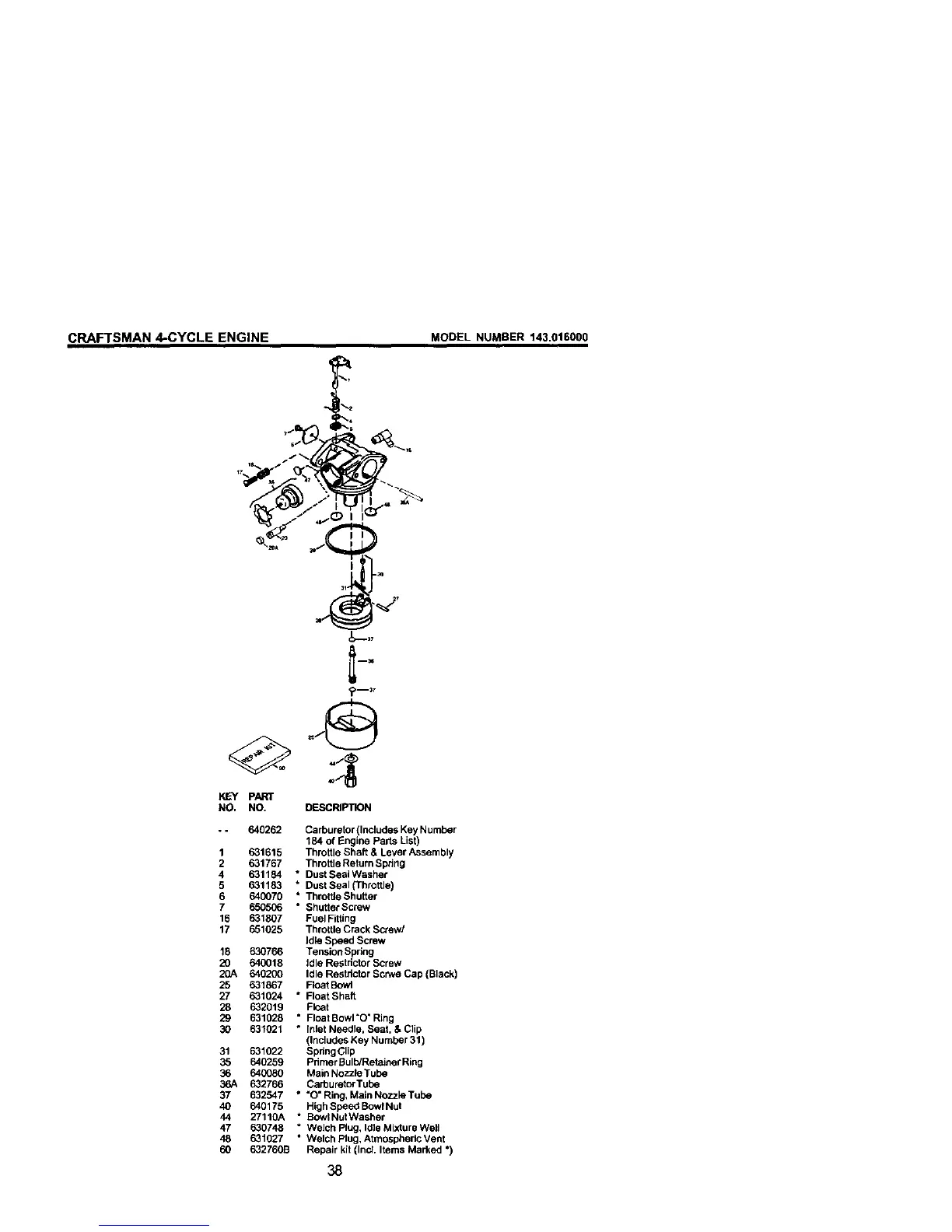 - - 640262 Carburetor (Includes Key Number