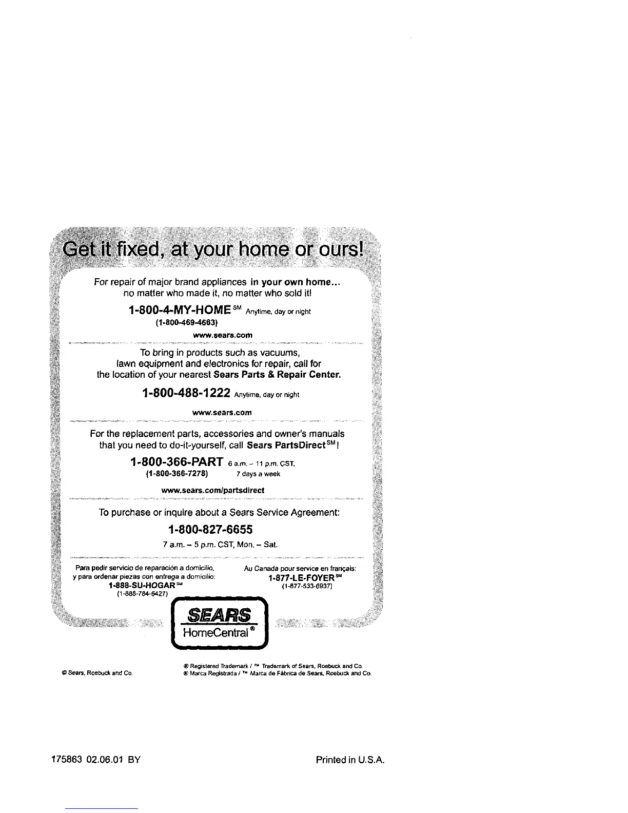 Para pedir servicio de reparacibn a domicilio, Au Canada pour service en franr.,ais: