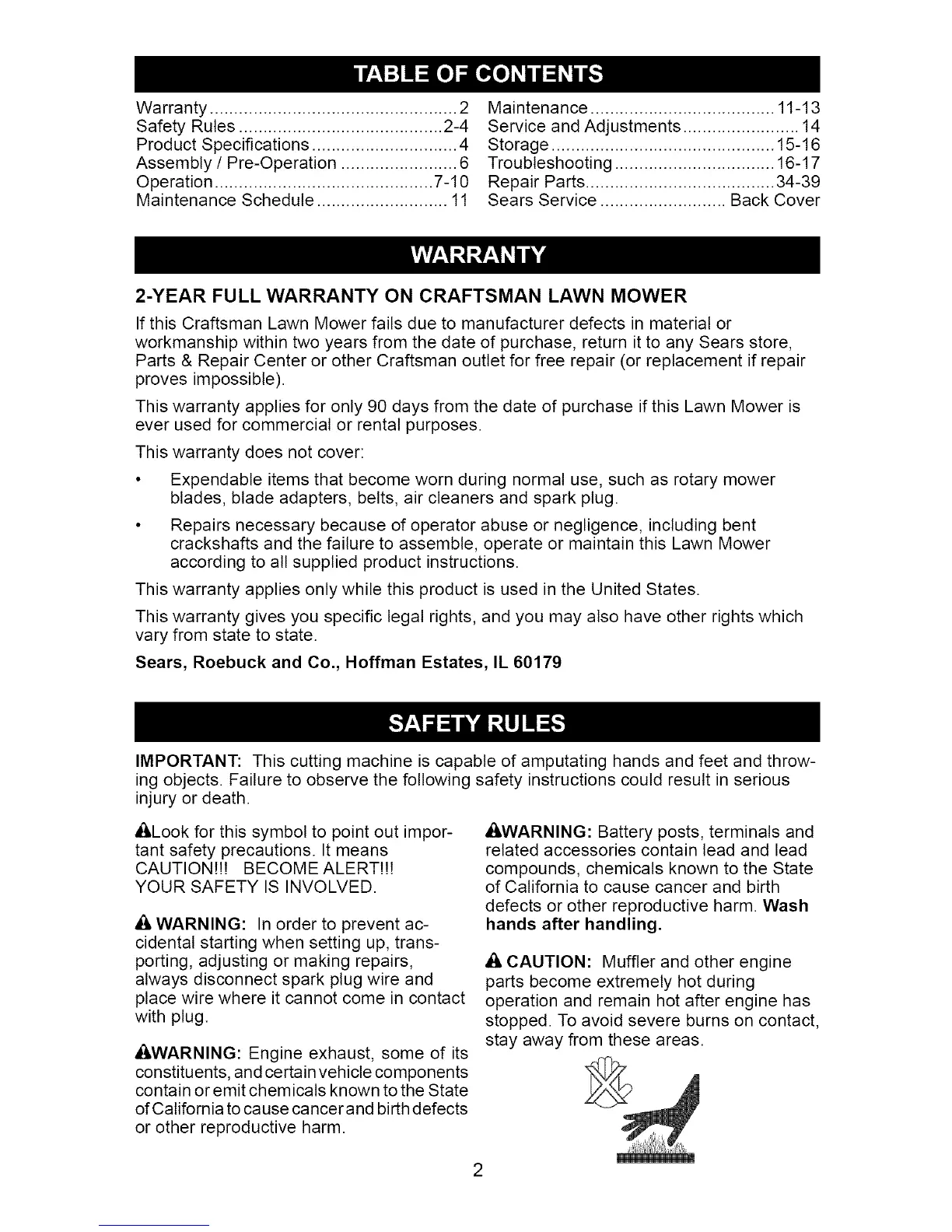 2-YEAR FULL WARRANTY ON CRAFTSMAN LAWN MOWER