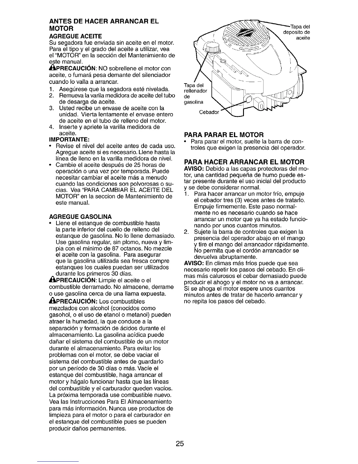• Cambie el aceite despu6s de 25 horas de