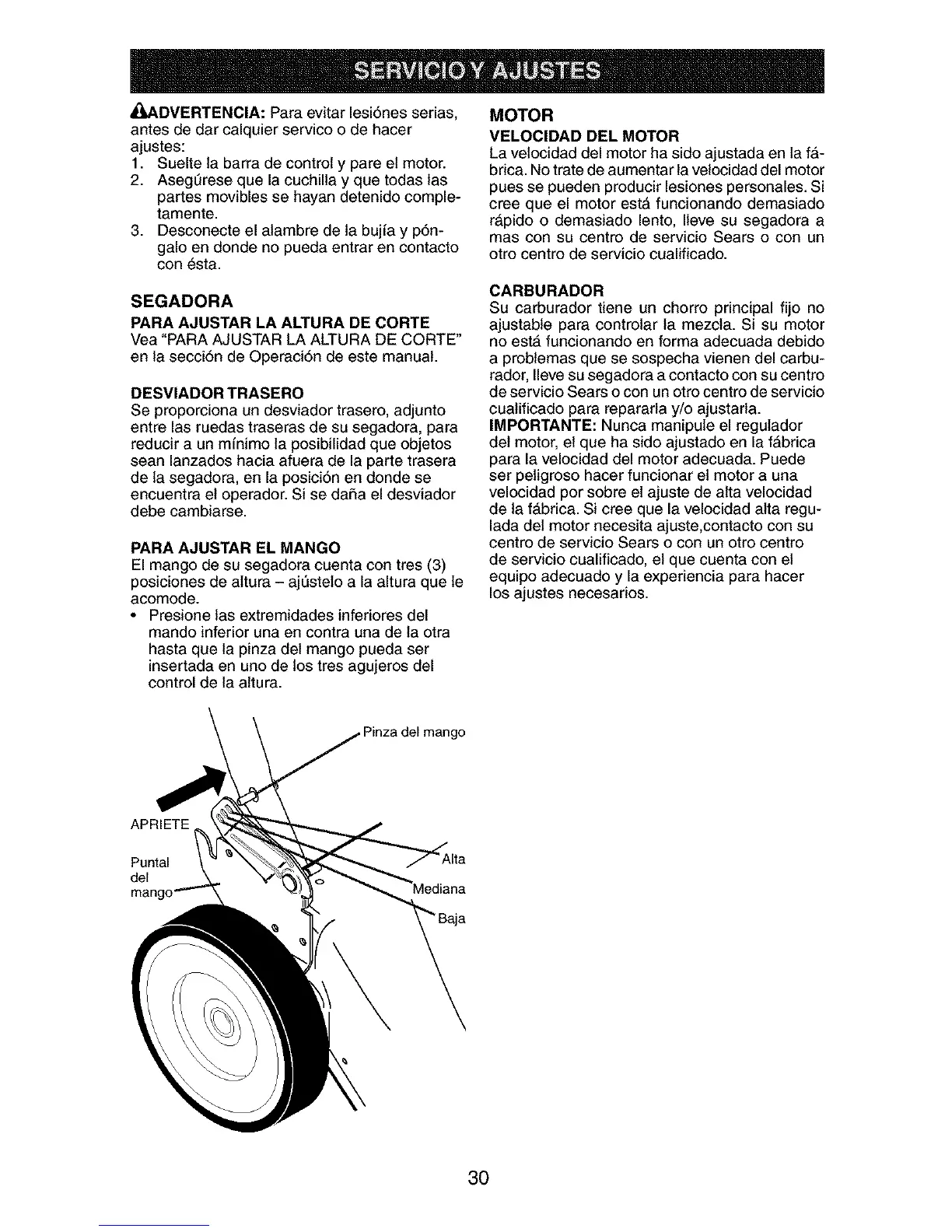 Vea "PARA AJUSTAR LA ALTURA DE CORTE °