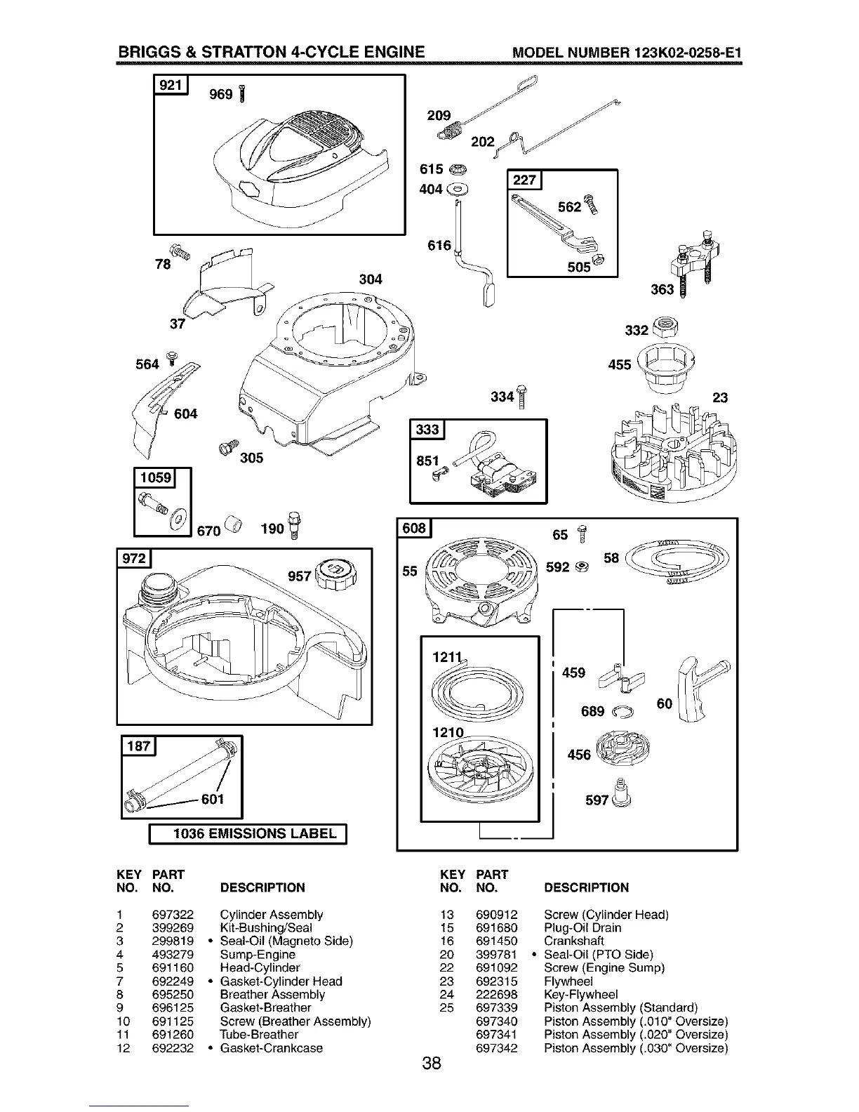 BRIGGS & STRATTON 4-CYCLE ENGINE MODEL NUMBER 123K02-0258-E1