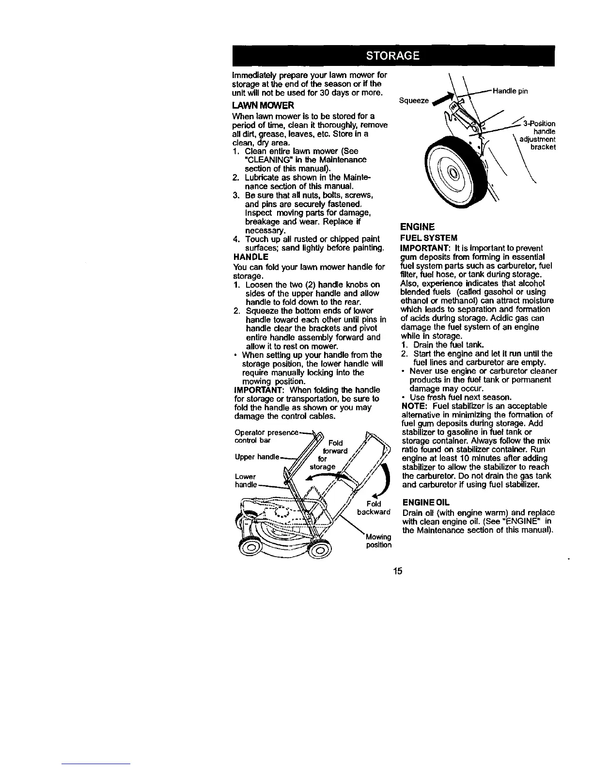 When lawn mower is to be stored for a
