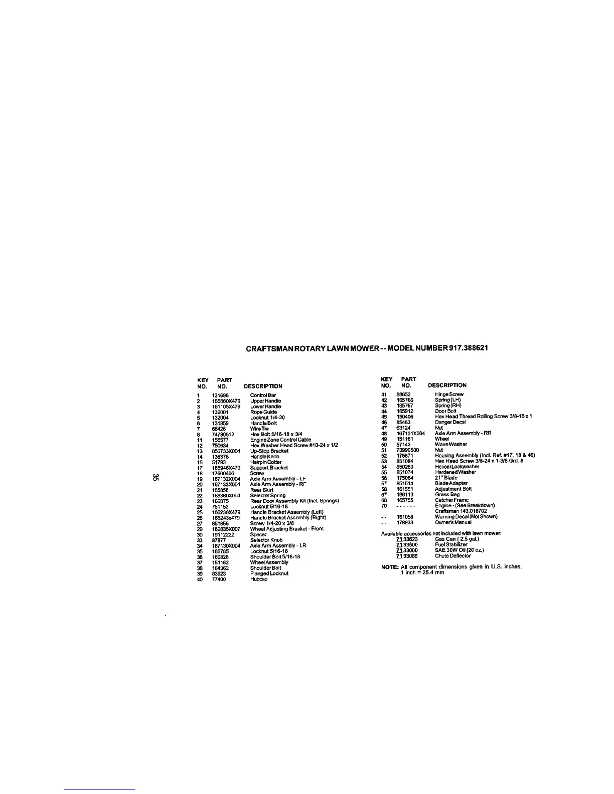CRAFTSMAN ROTARY LAWN MOWER- - MODEL NUMBER 917.388621