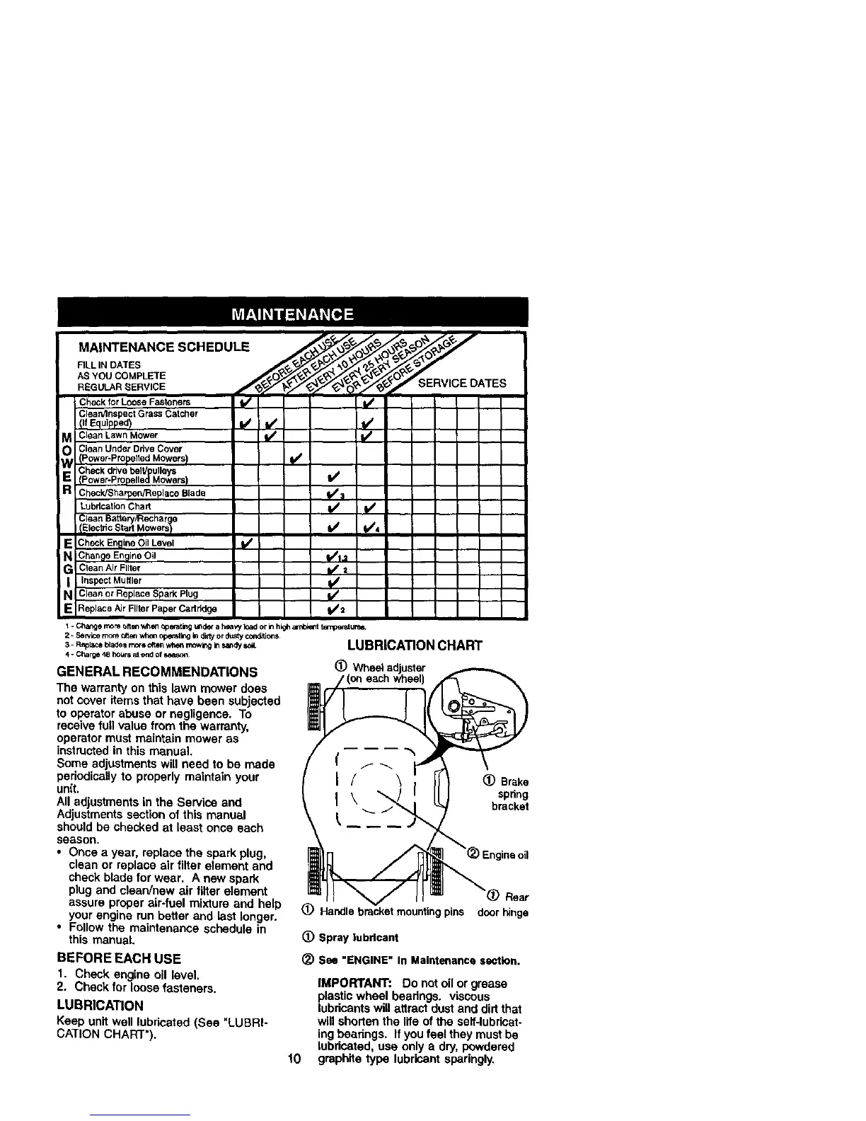 LUBRICATION CHART
