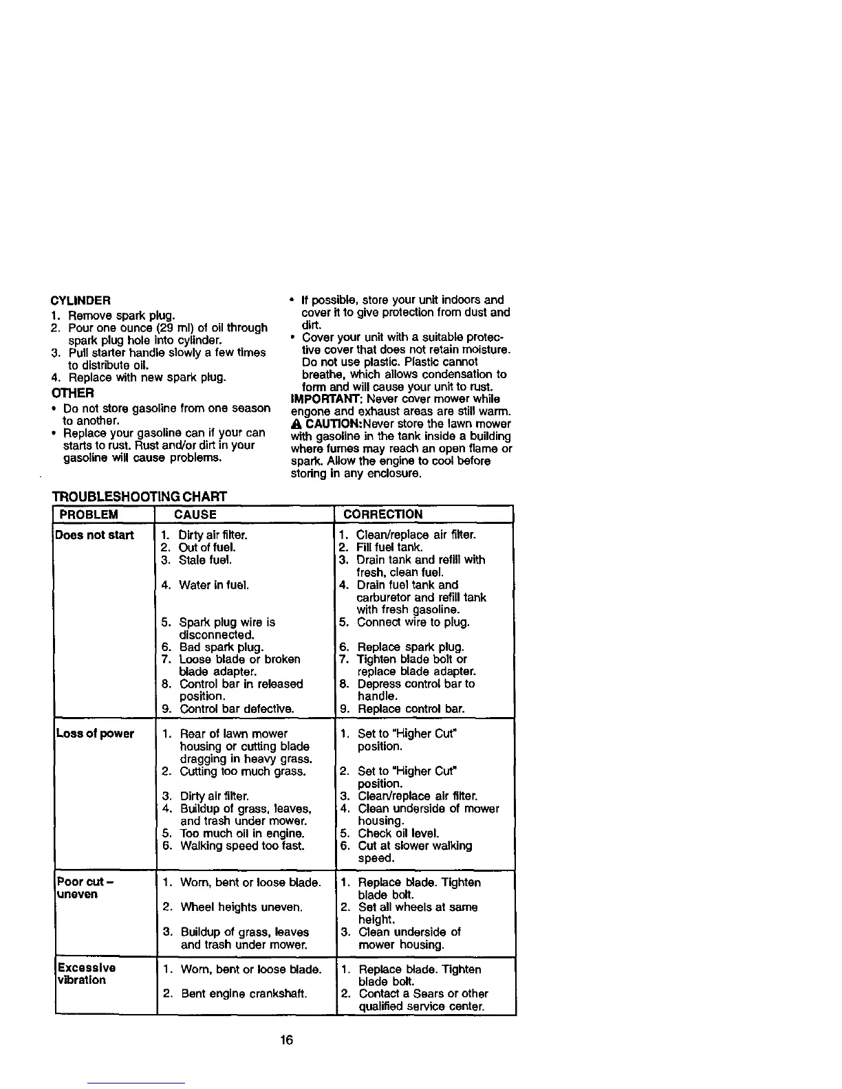 Loss of power 1. Rear of lawn mower