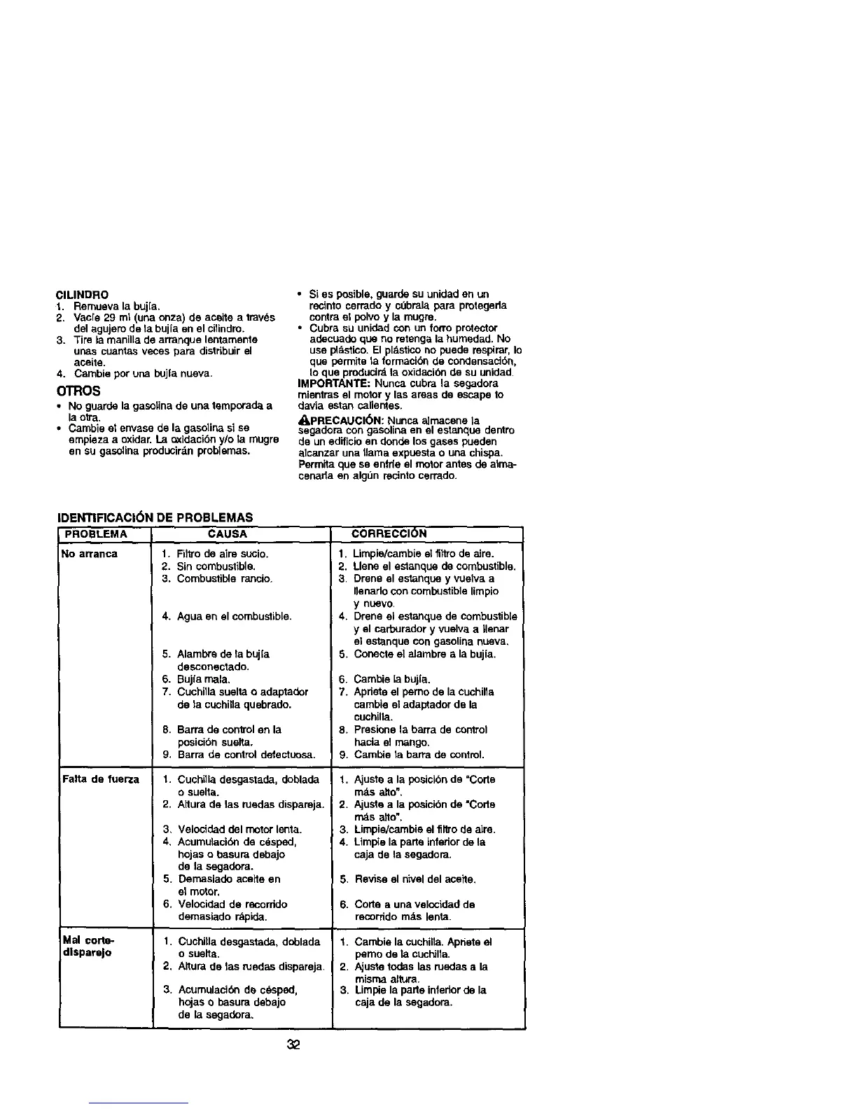 • No guarde la gasolina de una temporada a