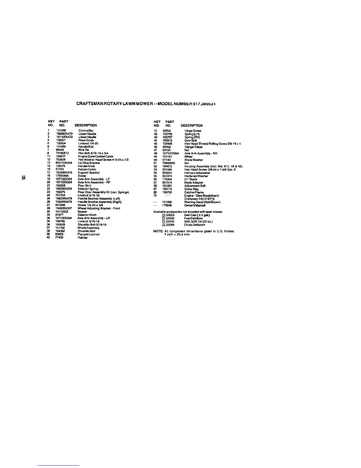 Spacer AvaiLableaccessories not included with lawn mower: