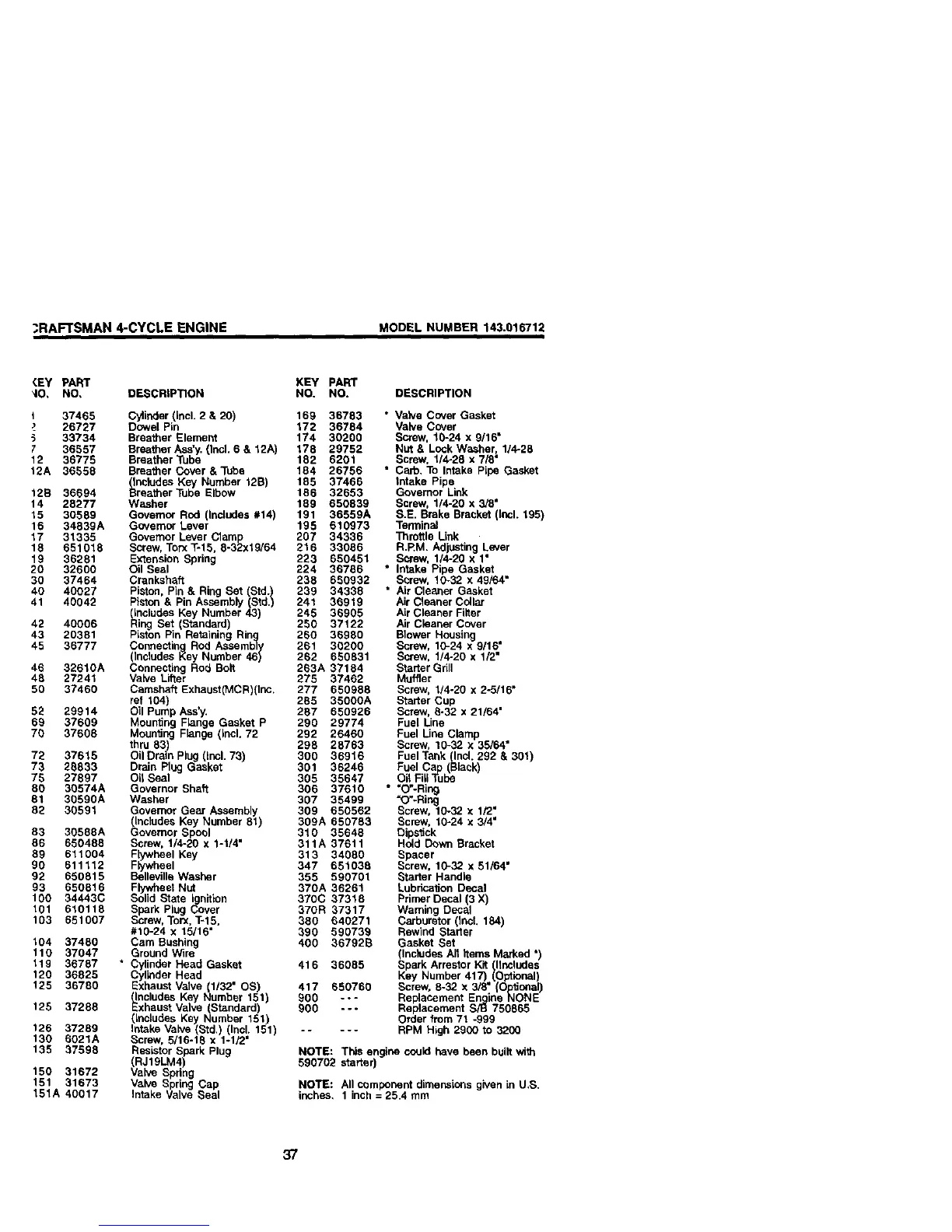 _RAFTSMAN 4-CYCLE ENGINE MODEL NUMBER 143.016712
