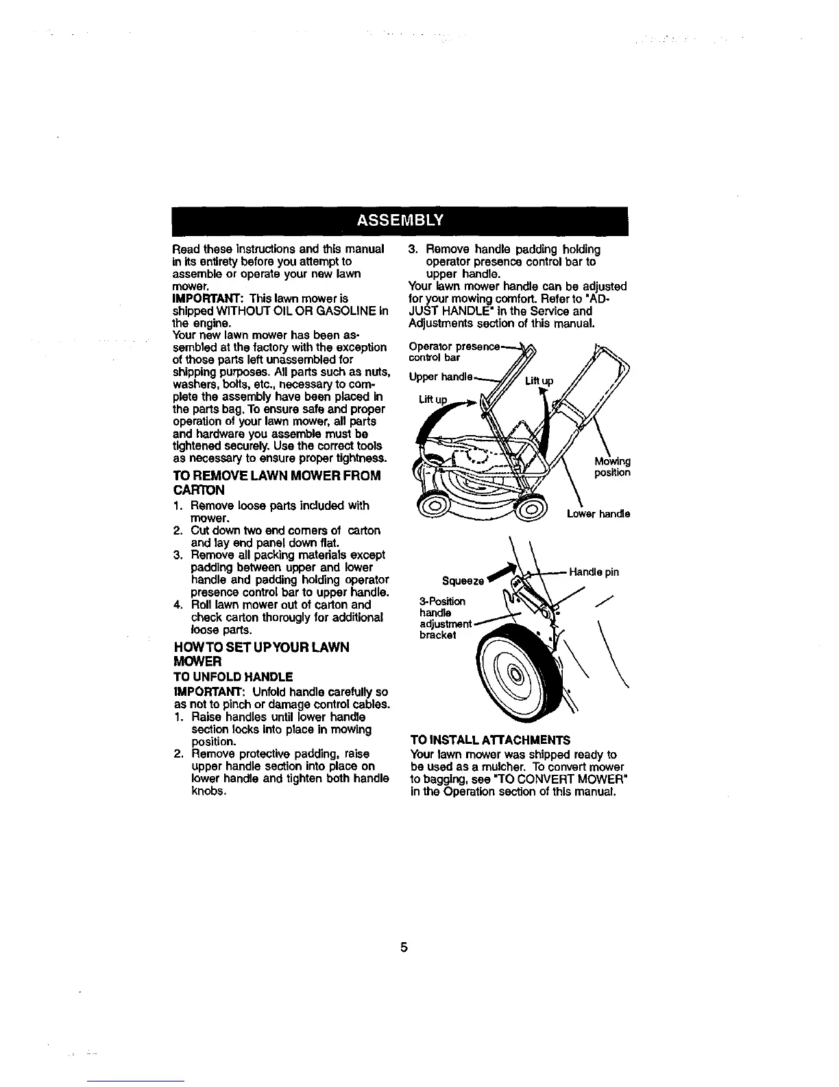 to bagging, see "TO CONVERT MOWER"