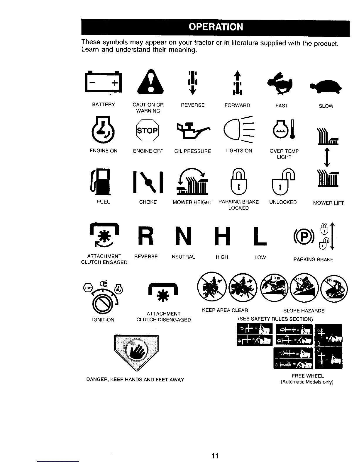 FUEL CHOKE MOWER HEIGHT PARKING BRAKE UNLOCKED MOWER LIFT