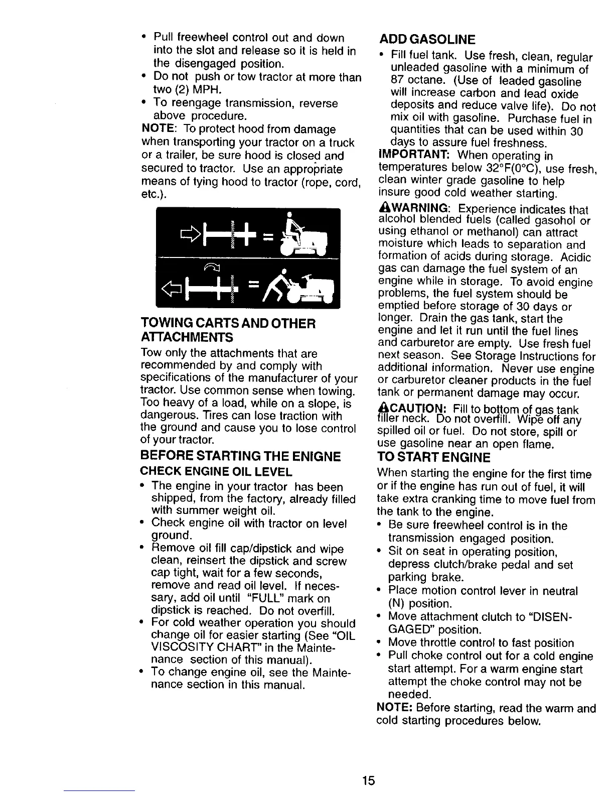 tractor. Use common sense when towing.