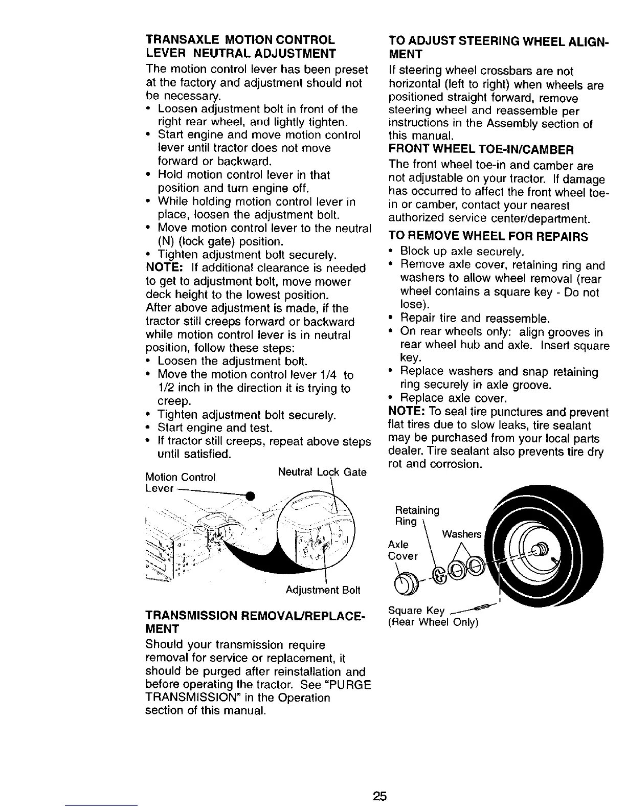 • If tractor still creeps, repeat above steps