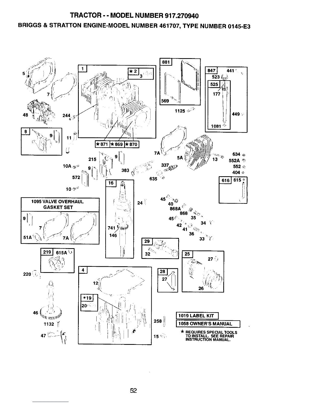 Craftsman 917 - Briggs & Stratton Engine Model Number 461707