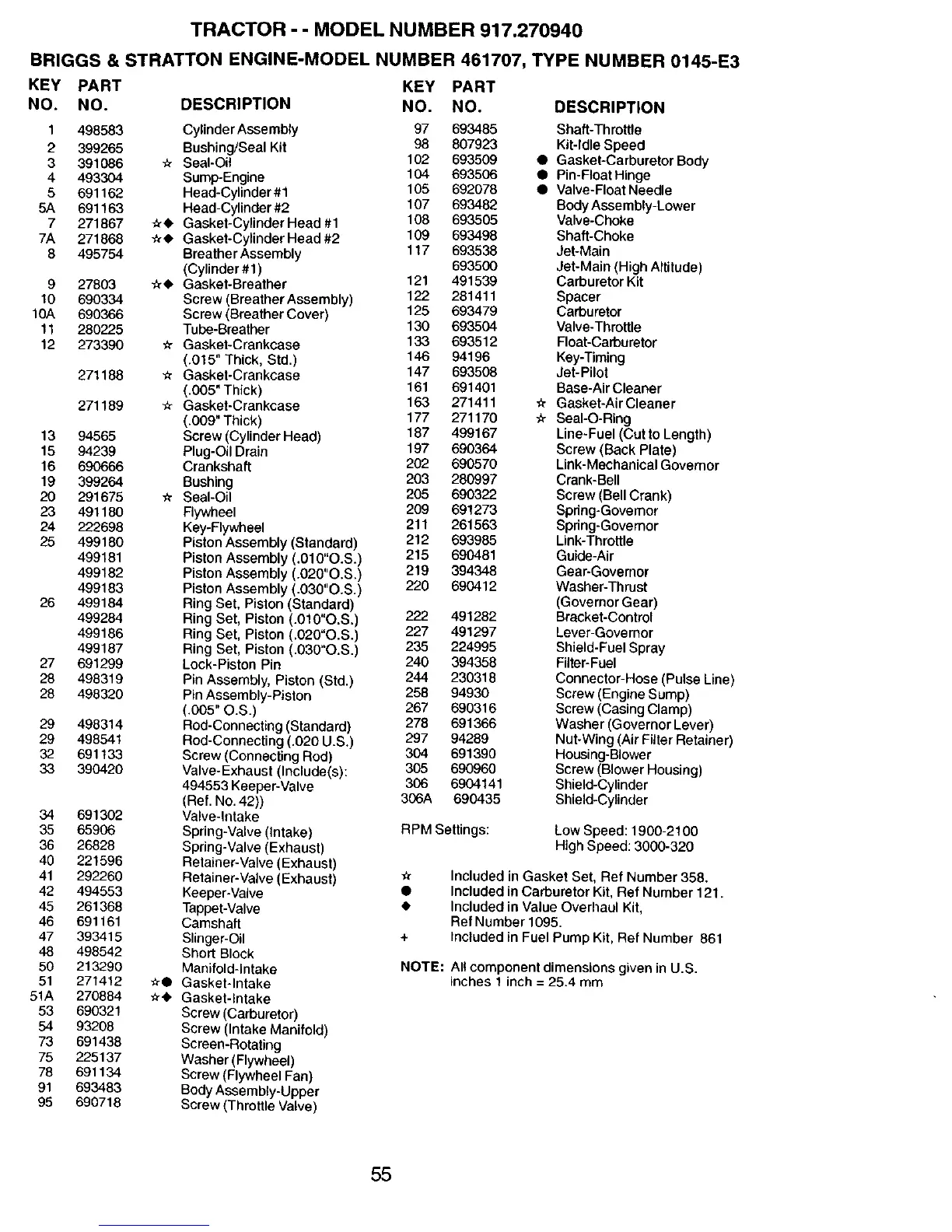 BRIGGS & STRATTON ENGINE-MODEL NUMBER 461707, TYPE NUMBER 0145-E3