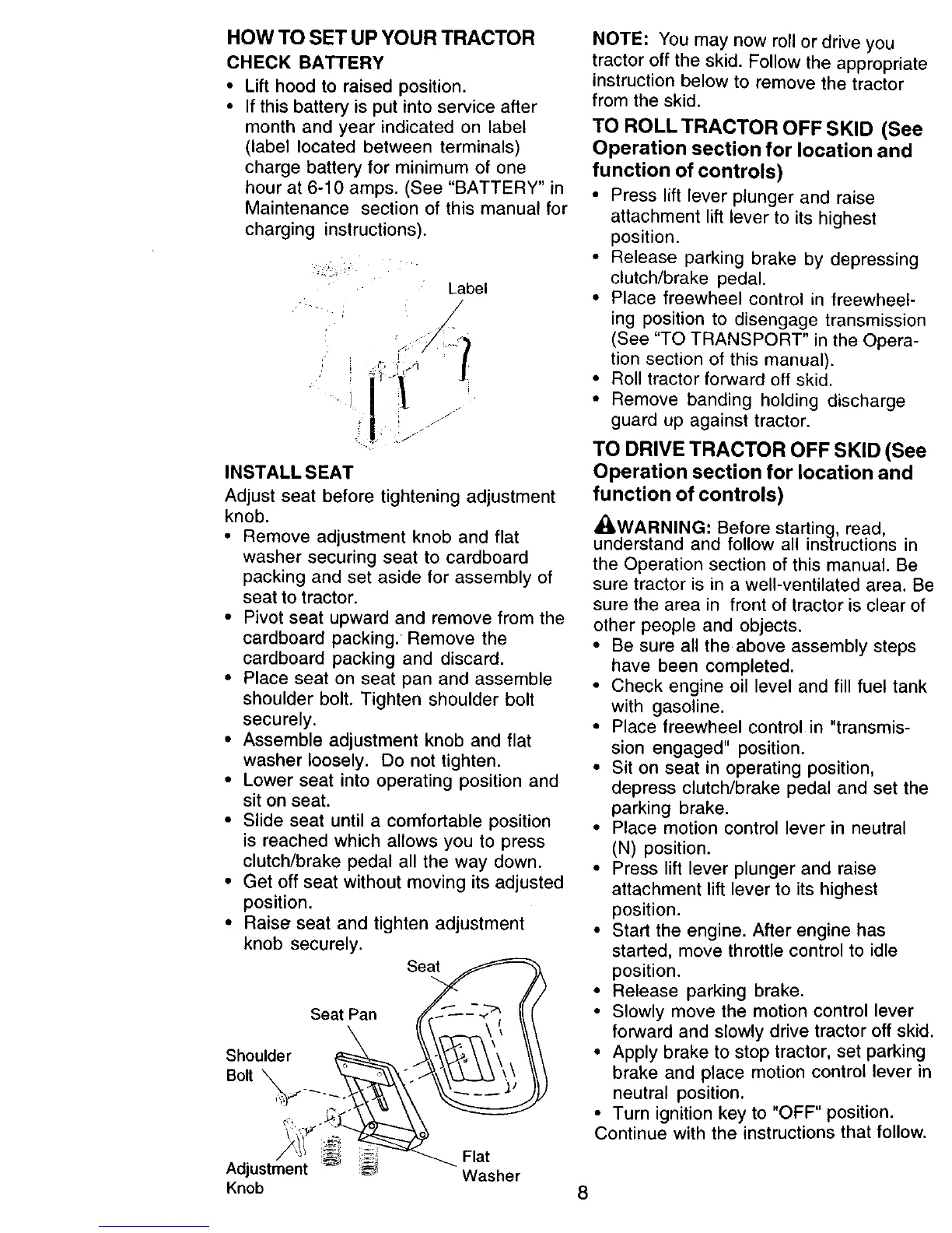 tractor off the skid. Follow the appropriate