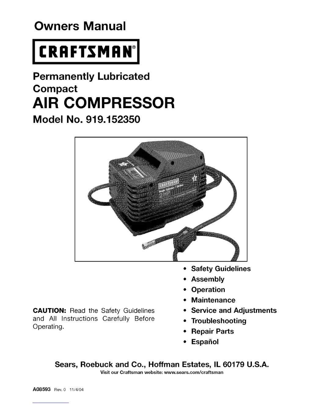 What to do if my Craftsman 919.152350 Air Compressor motor will not run?