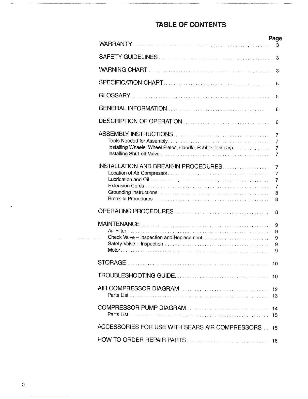 ACCESSORIES FOR USE WITH SEARS AIR COMPRESSORS 15