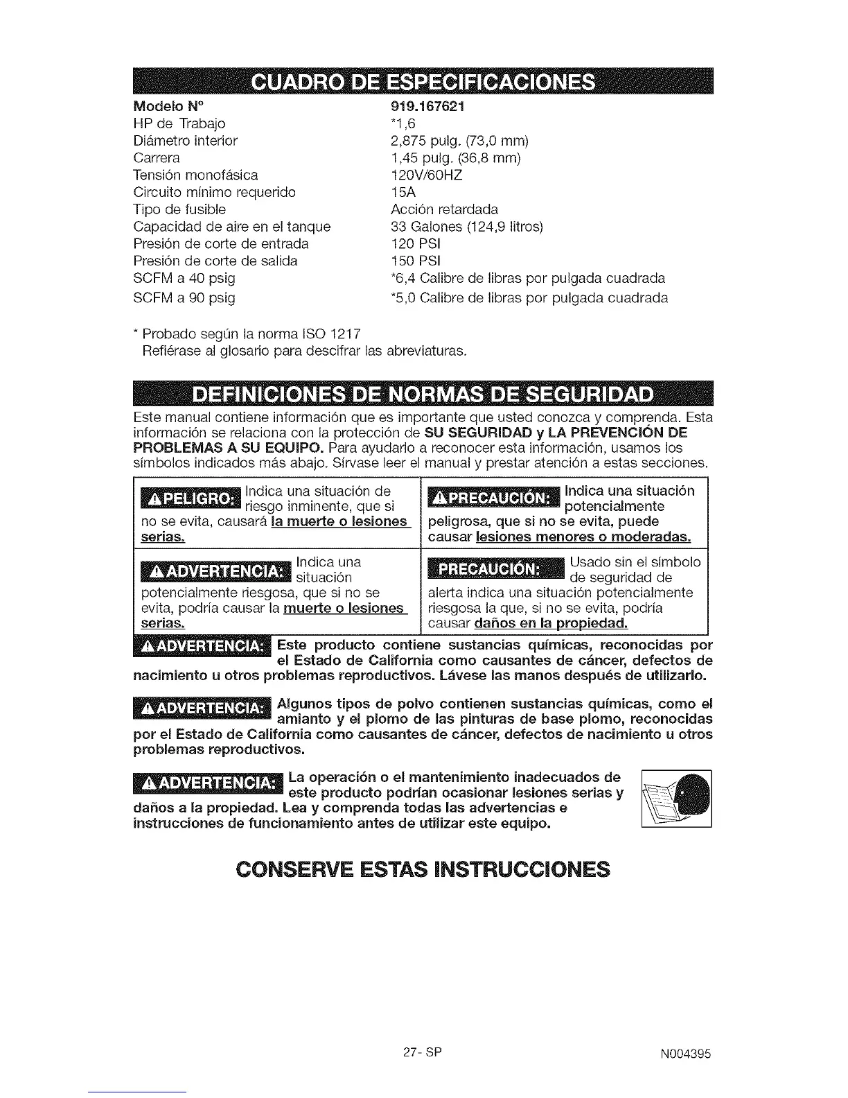 simbolos indicados mas abajo. Sirvase leer el manual y prestar atencidn a estas secciones.
