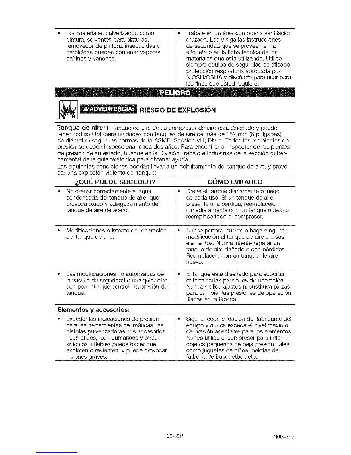 Tanque de aire: El tanque de aire de su compresor de aire est& diseSado y puede