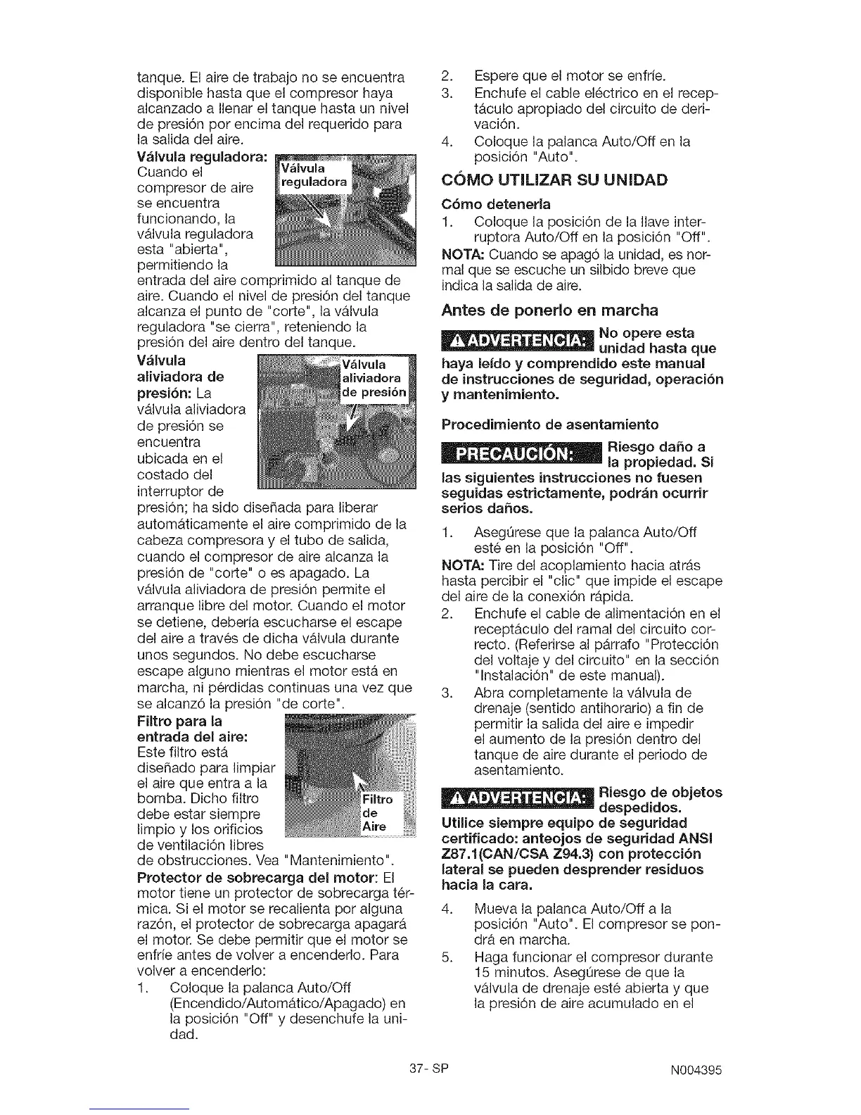 de instrucciones de seguridad, operaci6n