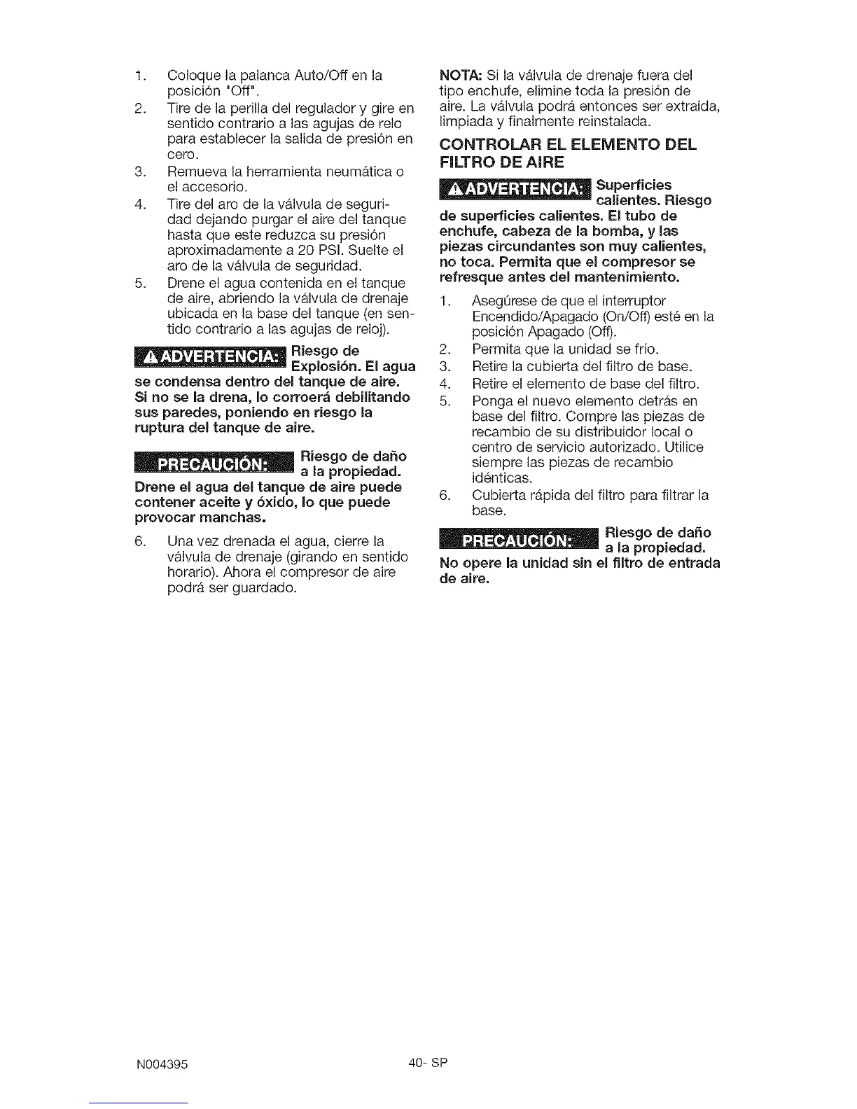de aire, abriendo la valvula de drenaje
