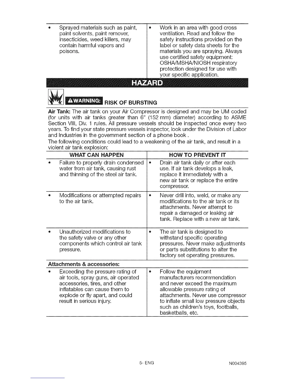 Air Tank: The air tank on your Air Compressor is designed and may be UM coded