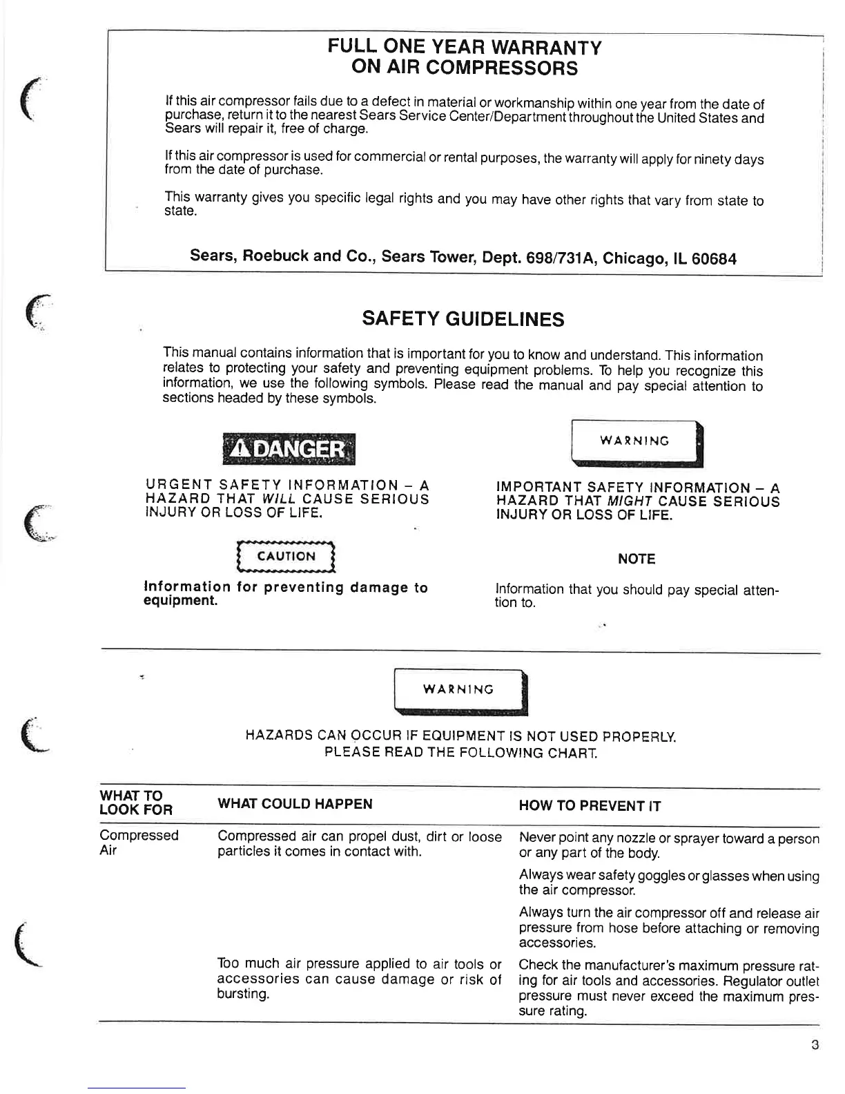 Craftsman 919.176830 - Full One Year Warranty; Safety Guidelines